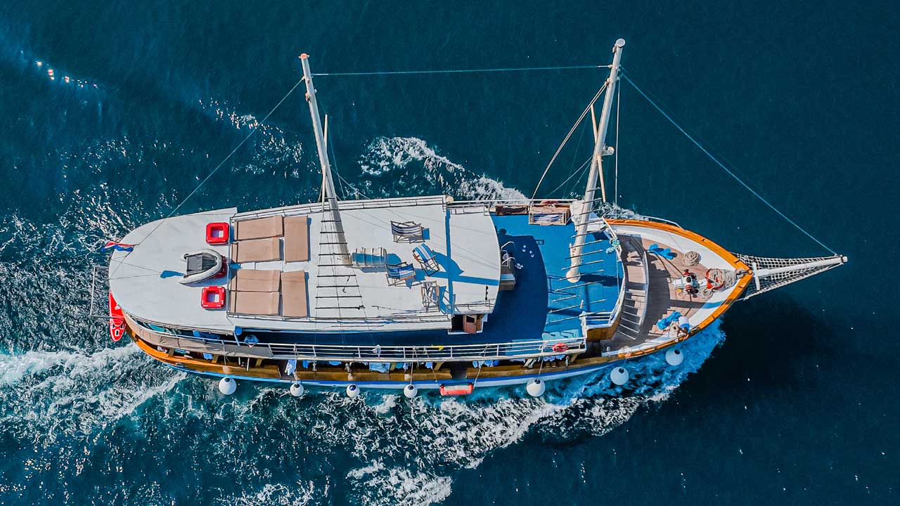 Unser Schiff, die NOVI DAN, ist eine elegante 27 Meter lange Gulet, die das authentische Flair klassischer Holzschiffe mit modernem Komfort vereint. An Bord finden ca. 26 Gäste in vollklimatisierten Zwei- sowie alternativ auch Dreibettkabinen mit jeweils eigenem WC und Badezimmer Platz – ein perfektes Schiff für diese Wanderreise!