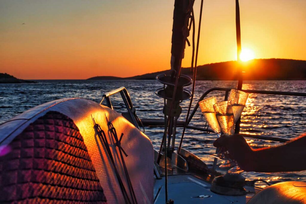 Unsere Yachten sind mit alkoholischen und nicht-alkoholischen Getränken ausgestattet. Wie wär’s mit einem Aperol Spritz zum Sonnenuntergang? Bestell‘ dir einen Sundowner und genieße den Urlaub in vollen Zügen!